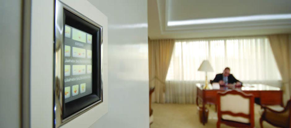 Integración del control de iluminación, cortinas, temperatura, seguridad y sonido en un solo sistema, estando fuera o dentro de su casa.